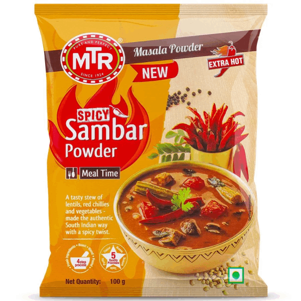 Coriander, Red Chilli, Red Gram Dal, Bengal Gram Dal, Salt Turmeric, Fenugreek, Cumin, Black Gram, Spicy Extract, Black Pepper, Mustard, Curry Leaves, Ginger & Asafoetida