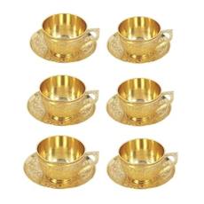 TIBETAN HANDICRAFTS Beautiful Flower Design Brass Tea Cup with Saucer
