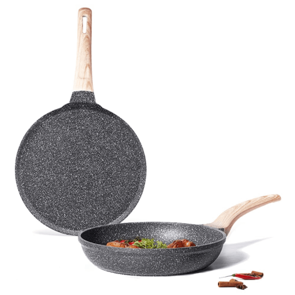 • SAFE GRANITE NON-STICK FRY PAN & Tawa Set: Imported PFOA-free non-stick tech makes this pan set a healthier choice. Performance-oriented nonstick material is ideal for perfect frying, browning, searing purposes, and various Indian recipes.